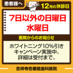 吉祥寺壱番館歯科医院 3月 休診情報 & 日曜診療日のお知らせ
